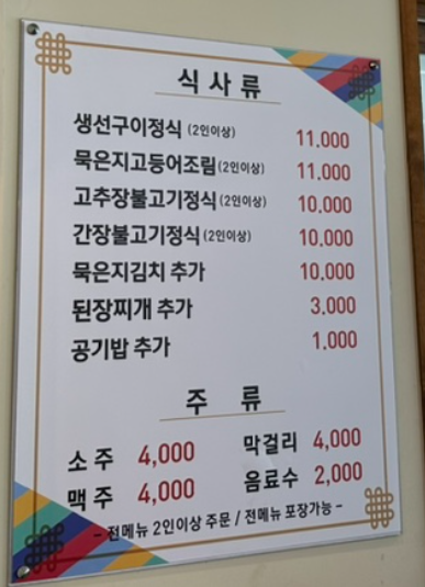 맛집답게 메뉴구성은 간단하며 모든 메뉴 2인이상 주문가능합니다.